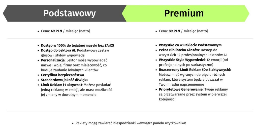 Legalność i Certyfikat: Korzystając z naszego systemu, otrzymujesz prawo do publicznego odtwarzania wygenerowanych treści w swoim lokalu komercyjnym.
